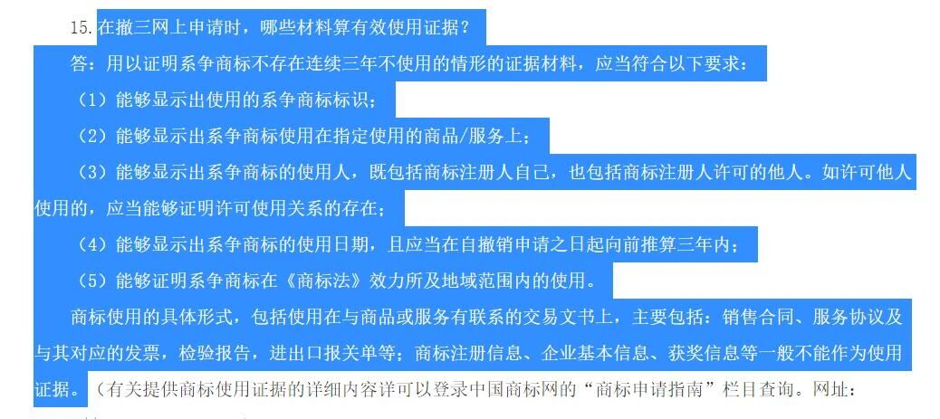 提交的使用证据须为收到撤三通知日以前三年内产生的可以证据商标有效使用的资料