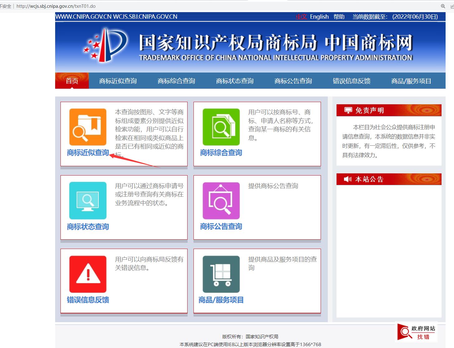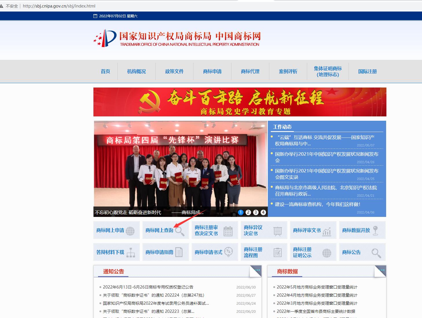 第一步打开中国商标网,点“商标查询”,