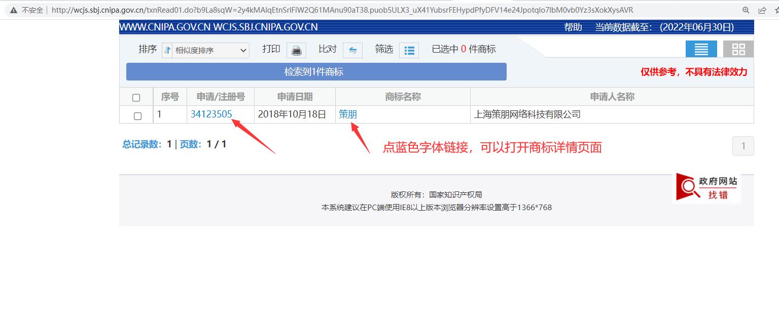 商标查询的目的是,降低商标注册风险,当然中国商标网的商标查询结果只是参考,并非绝对准确,如果您想提高商标注册成功率,还是有必要委托专业的策朋商标注册代理机构进行办理查询分析,因为策朋商标代理机构使用商业的商标查询软件,加上从事多年的商标代理行业经验,让商标注册查询结果更快,更可靠,成功率更高。欢迎与策朋商标代理人联系电话/微信:13122720888